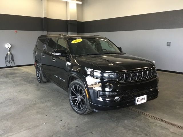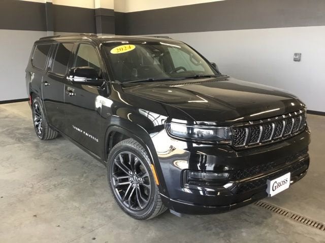 Certified Pre-Owned Gold Certified, 19 Speakers, 23 Speaker McIntosh Reference Audio System, 3.92 Rear Axle Ratio, 3rd row seats: bench, 4-Wheel Disc Brakes, ABS brakes, Adjustable pedals, Adjustable Roof Rail Crossbars, Air Conditioning, Alloy wheels, AM/FM radio: SiriusXM with 360L, Anti-whiplash front head restraints, Apple CarPlay/Android Auto, Audio memory, Auto High-beam Headlights, Auto-dimming door mirrors, Auto-dimming Rear-View mirror, Auto-leveling suspension, Automatic temperature control, Black Interior Accents, Brake assist, Bumpers: body-color, Compass, Delay-off headlights, Driver door bin, Driver vanity mirror, Driver's Seat Mounted Armrest, Dual front impact airbags, Dual front side impact airbags, Electronic Stability Control, Emergency communication system, Four wheel independent suspension, Front anti-roll bar, Front Bucket Seats, Front Center Armrest w/Storage, Front Console Cooler, Front dual zone A/C, Front fog lights, Front Passenger Interactive Display, Front reading lights, Fully automatic headlights, Garage door transmitter, Genuine wood console insert, Genuine wood dashboard insert, Genuine wood door panel insert, Gloss Black Upper & Lower DLO Molding, Heads-Up Display, Heated door mirrors, Heated front seats, Heated rear seats, Heated steering wheel, Illuminated entry, Knee airbag, Leather steering wheel, Leather Trimmed Bucket Seats, Low tire pressure warning, Memory seat, Navigation System, Normal Duty Suspension, Obsidian Appearance Package, Occupant sensing airbag, Outside temperature display, Overhead airbag, Overhead console, Panic alarm, Passenger door bin, Passenger seat mounted armrest, Passenger vanity mirror, Pedal memory, Piano Black Exterior Accents, Power adjustable front head restraints, Power door mirrors, Power driver seat, Power Liftgate, Power moonroof, Power passenger seat, Power steering, Power windows, Quick Order Package 28T Obsidian, Radio data system, Radio: Uconnect 5 Nav w/12.0 Display, Rain sensing wipers, Rear air conditioning, Rear anti-roll bar, Rear dual zone A/C, Rear reading lights, Rear seat center armrest, Rear window defroster, Rear window wiper, Rearview Autodim Digital Display Mirror, Reclining 3rd row seat, Remote keyless entry, Security system, Speed control, Speed-sensing steering, Speed-Sensitive Wipers, Split folding rear seat, Steering wheel memory, Steering wheel mounted audio controls, Tachometer, Telescoping steering wheel, Tilt steering wheel, Traction control, Trip computer, Turn signal indicator mirrors, Two Tone Paint Group, Variably intermittent wipers, Ventilated front seats, Ventilated Rear Seats, Voltmeter, Wheels: 22 x 9.0 Tinted Polished w/Black Insert. Odometer is 4284 miles below market average! Certified.Certified Pre-Owned Gold Details:* 125 Point Inspection* Warranty Deductible: $100* Vehicle History* Roadside Assistance* Limited Warranty: 3 Month/3,000 Mile (whichever comes first) after new car warranty expires or from certified purchase date* Vehicles Between 0-5 Model Years and/or 75,000 Miles. Thorough Reconditioning Process Using Authentic Mopar Parts. 12 Month/12,000 Mile Extended Care Premium Warranty, Car Rental Allowance, 3-Month Trial Subscription for SiriusXM GuardianTM and Satellite Radio2024 Jeep Grand Wagoneer L Series II